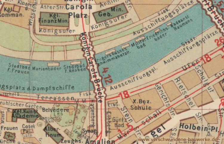 Bauherr: Stadt Dresden, Stadtbaurat Hermann Klette (8.2.1847 - 27.2.1909)Zerstört: 7.5.1945