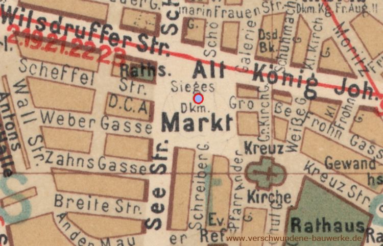 Das Germaniadenkmal in der Mitte des Altmarkts blieb im zweiten Weltkrieg weitgehend unversehrt, wurde im Jahre 1949 jedoch abgetragen. Teile des Denkmals nutzte man zur Rekonstruktion von Antonio Corradinis Üppigkeitsvase im Großen Garten. Der Kopf des Denkmals wurde 1991 in einem Garten in Blasewitz entdeckt und ist heute im Dresdner Stadtmuseum zu besichtigen.