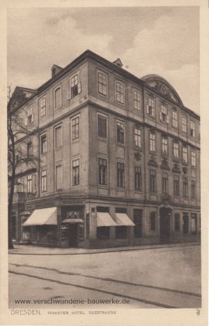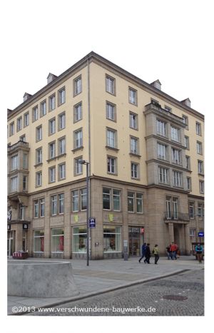 Erbaut für Legationsrat Ferdinand Ludwig von Saul, später als Ministerhotel genutzt, 1924 nach Entwürfen von Oskar Pusch für die Sächsische Staatsbank umgebaut.