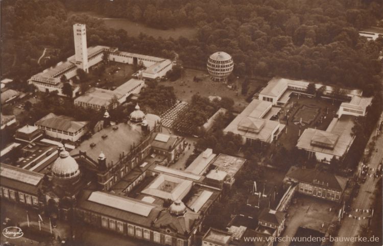 An der südlichen Stirnseite war seit der Eröffnung ein Restaurantbereich. Ein kleiner Konzertsaal wurde 1901 als halbrunder Anbau an das südliche Gebäudeteil angefügt. Es folgte 1902 die Weinterrasse. Bereits um 1910 ergaben sich mit den vorhandenen baulichen Strukturen Schwierigkeiten, weil sie den wachsenden Anforderungen nicht mehr genügten. Nach 1922 ergänzte man das Gelände mit weiteren umfassenden hallenartigen Flachbauten.