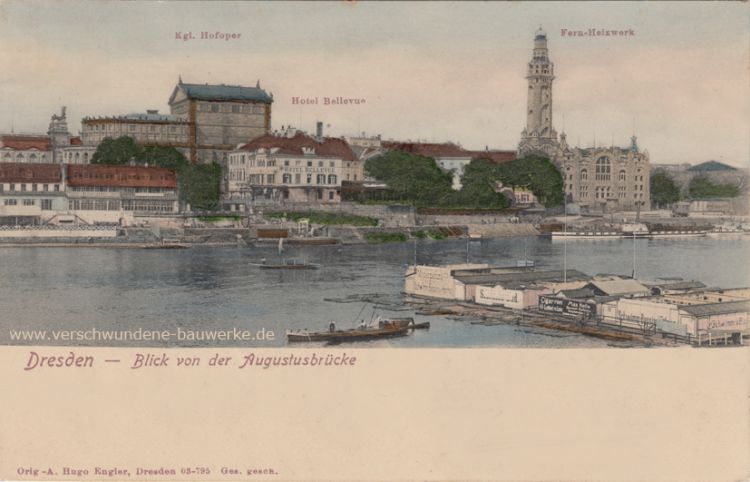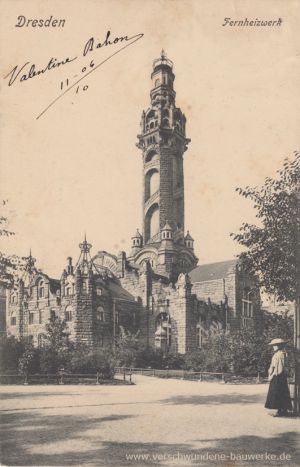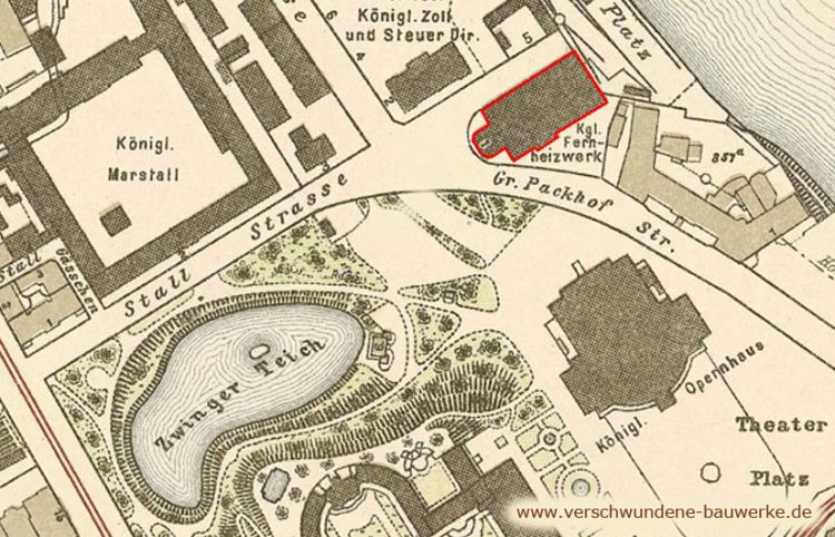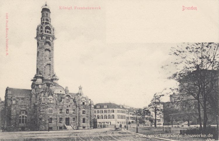 Die renommierten Dresdner Architekten William Lossow und Hermann Viehweger gewannen den Architekturwettbewerb, begannen 1899 mit dem Bau und im Dezember 1900 wurde die 3.000.000 Mark teure Anlage in Betrieb genommen. Mit Rücksicht auf die Stadtsilhouette („Canaletto-Blick“) erhielt der Industriebau eine Fassade aus Elbsandstein und der Schornstein wurde als Turmbau mit Aussichtsplattform ausgeführt. 1928 ging das Heizkraftwerk in das Eigentum der Stadt Dresden über und wurde später als Umformerstation genutzt, der nicht mehr benötigte Schornstein wurde um 1935 abgetragen. Das Fernheiz- und Elektrizitätswerk diente der Versorgung von insgesamt 18 Gebäuden, darunter: Zoll- und Steuerdirektion (heute Standort des Landtags), Semperoper, Gemäldegalerie und Zwinger, Hofkirche, Residenzschloss, Ständehaus, Johanneum, Bibliothek, Kunstakademie, Altes Polizeigebäude (Coselpalais), Belvedere, Albertinum, Polizeipräsidium und Landhaus.