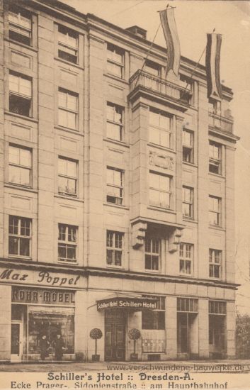Das ab 1913 nach seinem Betreiber Emil Paul Schiller benannte Hotel überstand zunächst die Bombenangriffe vom Februar 1945 und wurde danach unter dem Namen "Excelsior" weitergeführt. 1965 wurde der Baustab für den Neuaufbau der Prager Strasse darin untergebracht, 1969 wurde das Gebäude komplett abgerissen.
