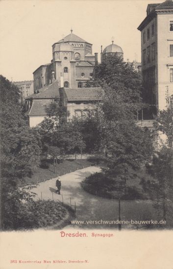 Der von Semper entworfene neoromanische Bau war als erste moderne Synagoge innen einheitlich im maurischen Stil gestaltet und diente als Modell für zahlreiche weitere Synagogenbauten. Die Synagoge bot mit 300 Sitzplätzen für Männer und 200 für Frauen insgesamt 1000 Personen Platz und war zur Zeit ihrer Fertigstellung die größte Synagoge in Deutschland.