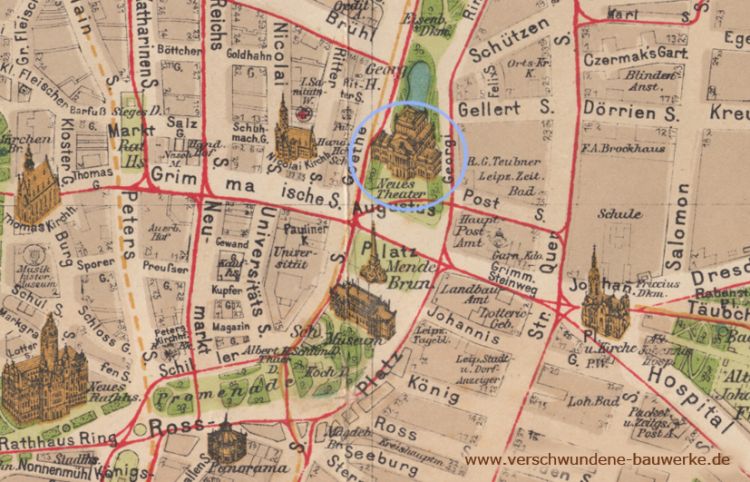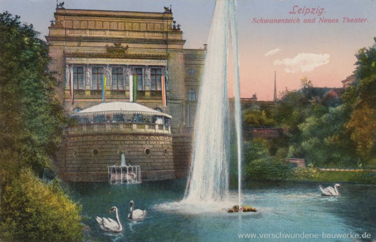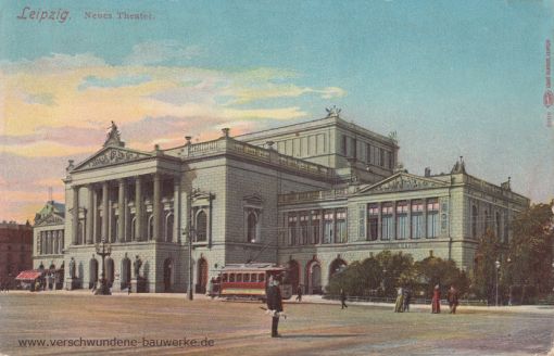 Das Neue Theater wurde an der Nordseite des Augustusplatzes erbaut, bot 1700 Sitz- und 300 Stehplätze und war für Schauspiel, Oper und Ballettaufführungen gedacht. Da sich das Haus für das
