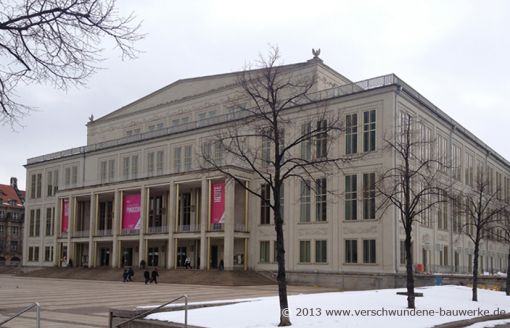 Die Ruine des bei einem alliierten Luftangriff zerstörten Gebäudes wurde 1950 abgetragen und an gleicher Stelle nach mehreren Wettbewerben und Vorprojekten von 1956 bis 1960 die neue Oper errichtet, die, obwohl im damaligen Zeitgeschmack erbaut, in einigen Merkmalen an das Neue Theater erinnert. Als Ausweichsquartier der Oper diente von 1945 bis 1960 das Haus Dreilinden im Leipziger Stadtteil Lindenau.